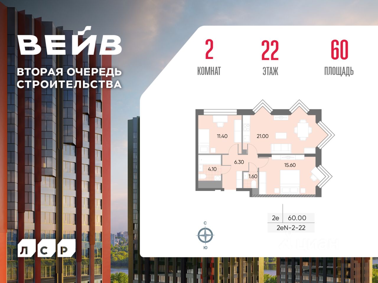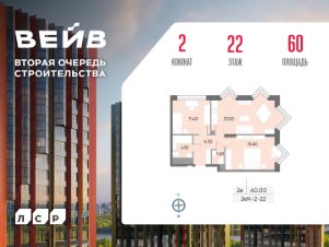 Продается 2-комнатная квартира общей площадью 60 кв. метров на 22 этаже жилого комплекса ВЕЙВ. Комплекс располагается на юге Москвы в районе Москворечье-Сабурово. В пешей доступности расположены станция МЦД "Москворечье" и станция метро "Борисово". Для автомобилистов есть удобное сообщение с Каширским шоссе.