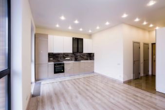 Кухня-гостиная, спальня со своей гардеробной и просторным балконом, 1 санузел , гардеробная-постирочная в зоне прихожей.