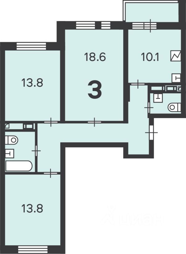Продаётся просторная и светлая трёхкомнатная квартира площадью 76 кв. м в современном районе Москвы.