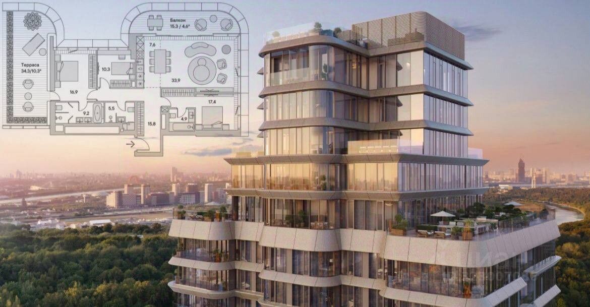 Квартира расположена на 7 этаже. Функциональная планировка с большой кухней-гостиной с выходом на балкон, тремя санузлами, три спальни, включая полноценный мастер-блок с собственной террасой.