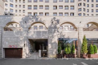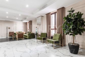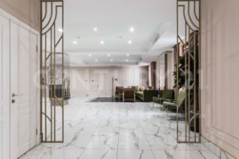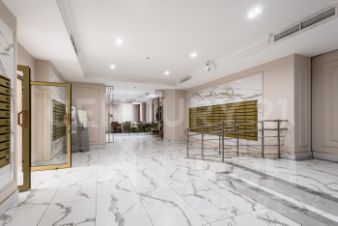 В лобби предусмотрены большие колясочные и удобные зоны ожидания для посетителей, в отделке строительства использован натуральный мрамор.