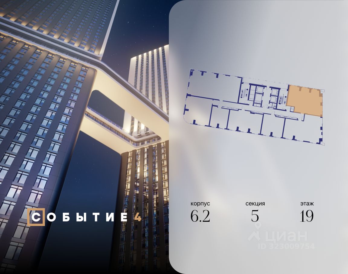 Продаётся 3-комнатная квартира от застройщика: общая площадь 77.20 м², жилая 41.70 м², кухня 18.10 м², 19-й этаж, жилой квартал "Событие-6", корпус 2 (секция 5) Срок сдачи: 1 квартал 2029 года.