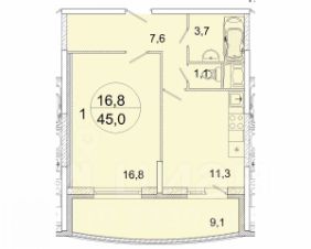 1-комнатная квартира, г. Ивантеевка, улица Прокудина, дом 1, 18 этажного современного монолитного дома, общей площадью с учетом лоджии 45,7 кв. Метров, без учета лоджии 40,9 кв. Метров, комната 17,0 метров, уютная кухня 11,4 метров, раздельный санузел, холл, большая застекленная лоджия 9,5 метра.