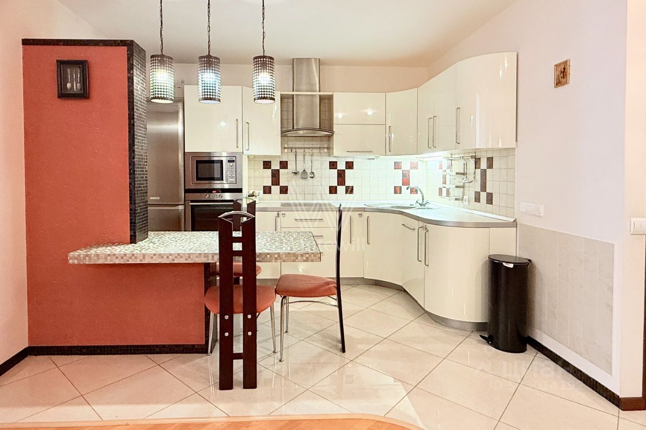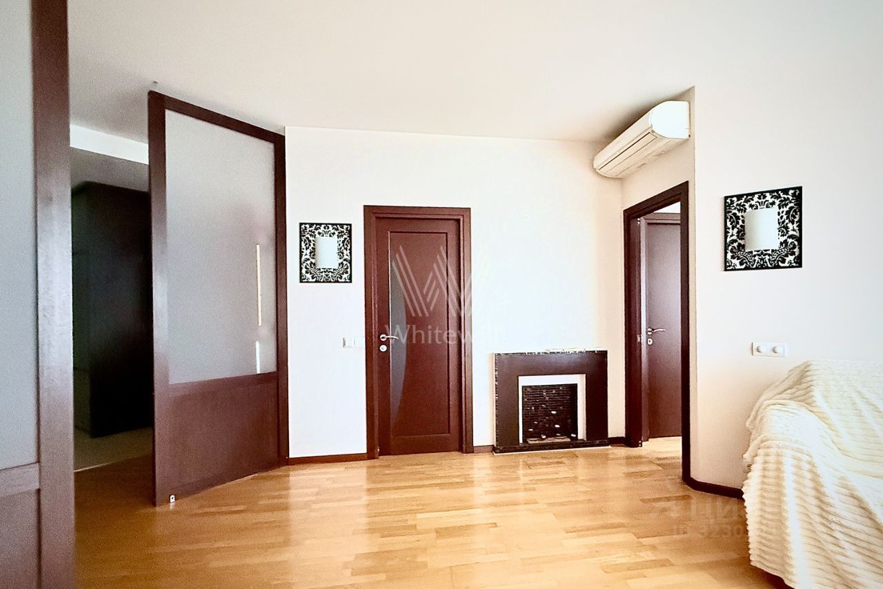 Функциональная планировка включает гостиную с эко-камином, кухню, мастер-спальню со своей гардеробной, вторую спальню с выходом на балкон, 2 санузла и холл. Квартира укомплектована мебелью и бытовой техникой Bosch. Паркинг наземный.