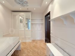 Просторная квартира с двумя спальнями в доме бизнес-класса "60-летия Октября, 8". Квартира с отделкой площадью 100 м² расположена на девятом этаже. Продуманы различные сценарии освещения — люстры, настенные светильники и споты. Установлена система индивидуального кондиционирования.