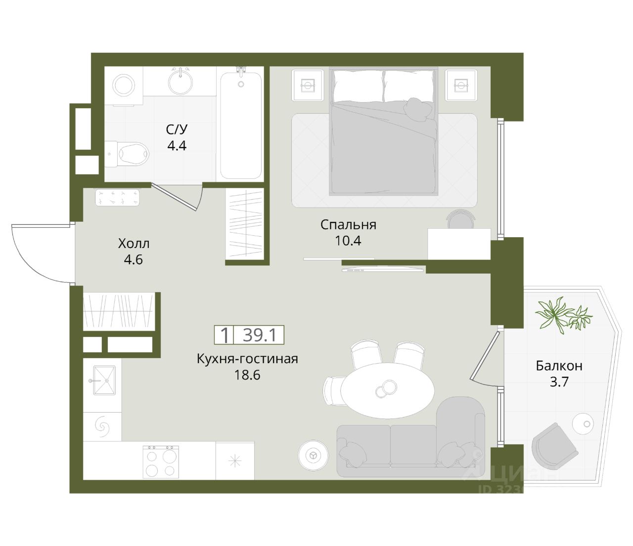 Продается 1-комнатная квартира на 2 этаже с готовой отделкой от застройщика. В квартире 1 спальня и кухня-гостиная, 1 санузел, балкон, вид из окна на парковку. Линейная планировка. Общая площадь 39,1 кв.м.