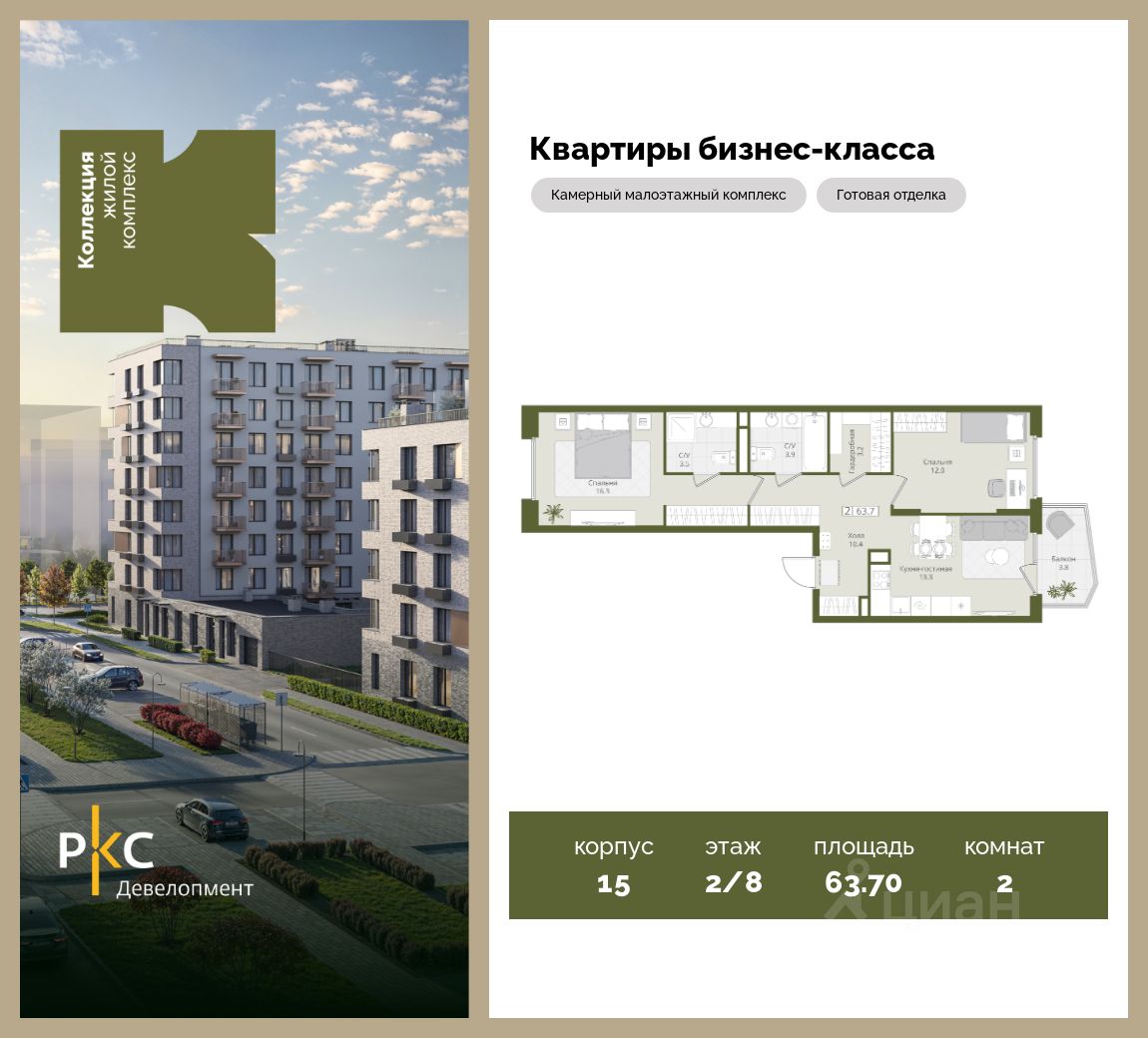 Продается 2-комнатная квартира на 2 этаже с готовой отделкой от застройщика.. Общая площадь 63,7 кв.м.