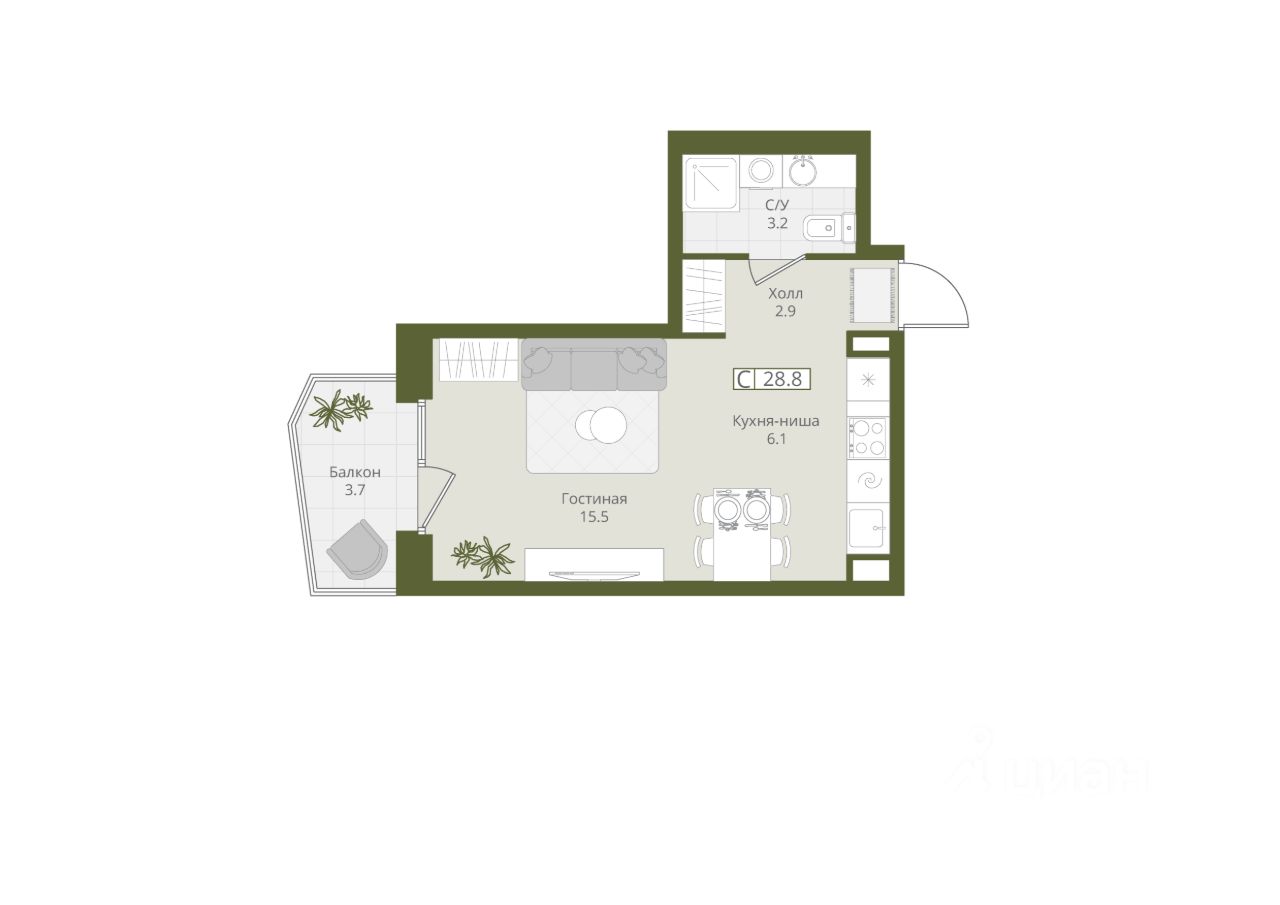 Продается уютная студия на 4 этаже от застройщика. Общая площадь 28,8 кв.м.