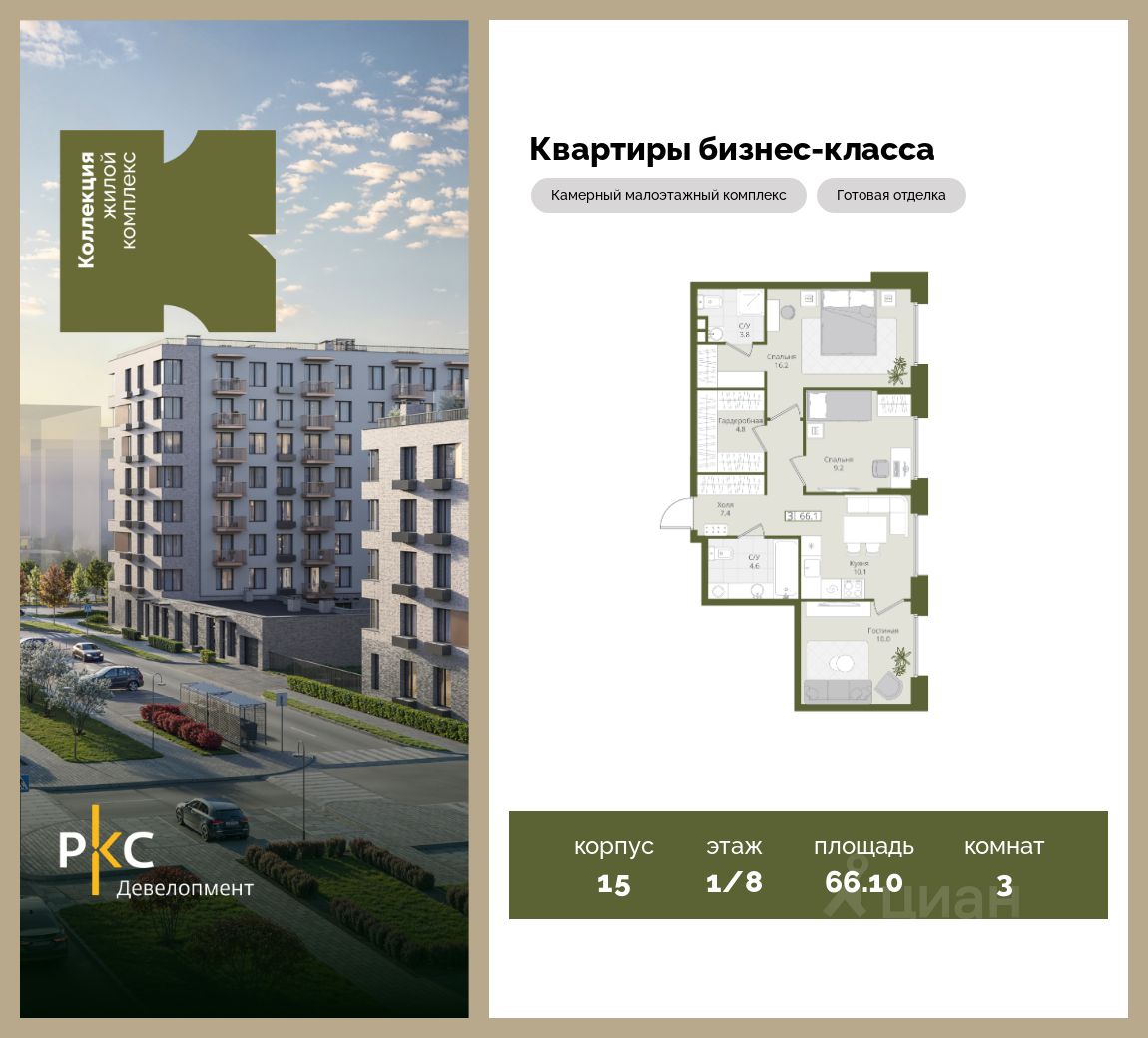 Продается уютная 3-комнатная квартира на 1 этаже от застройщика. Общая площадь 66,1 кв.м.