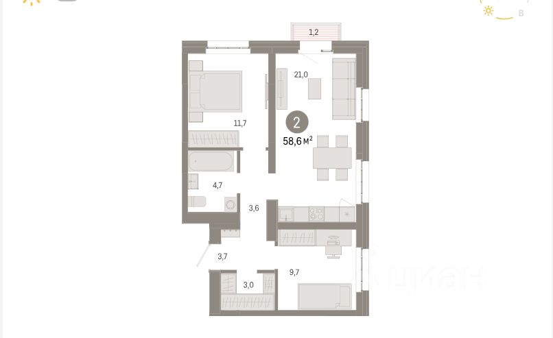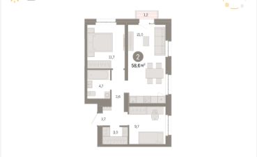 Арт. 111535586 Квартира с предчистовой отделкой евро-формата, с кухней-гостиной и двумя спальнями, в квартале "Метроном".