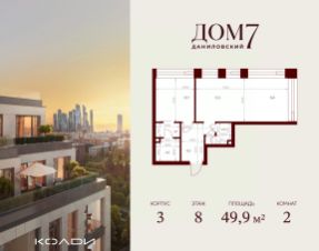 Продается 2-к квартира общей площадью 49.90 кв.м на 8 этаже в жилом квартале премиум-класса "Дом 7 Даниловский".