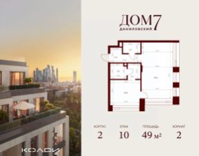Продается 2-к квартира общей площадью 49.00 кв.м на 10 этаже в жилом квартале премиум-класса "Дом 7 Даниловский".