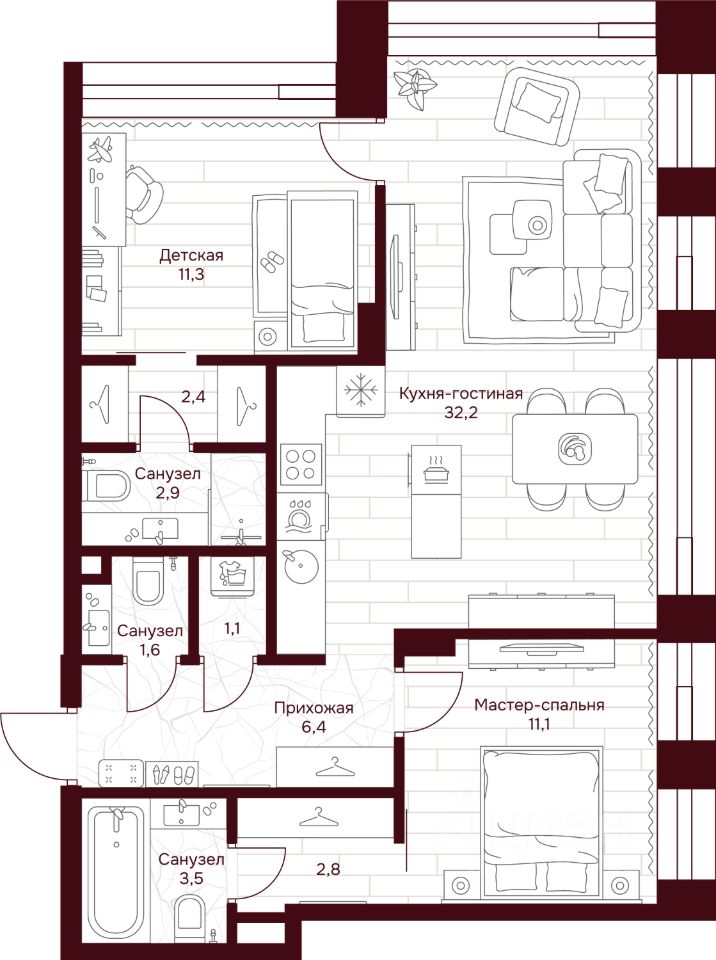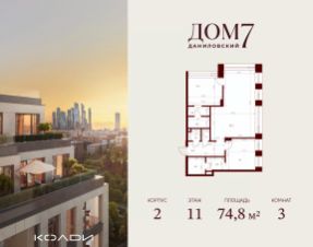 Продается 3-к квартира общей площадью 74.80 кв.м на 11 этаже в жилом квартале премиум-класса "Дом 7 Даниловский".