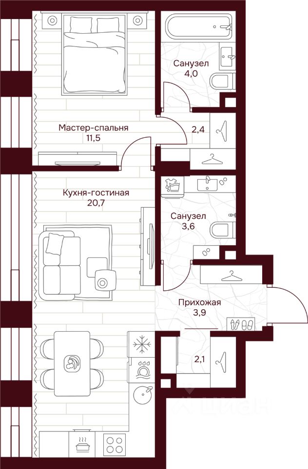 Продается 2-к квартира общей площадью 48.20 кв.м на 12 этаже в жилом квартале премиум-класса "Дом 7 Даниловский".