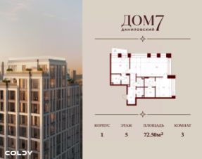Продается 3-к квартира общей площадью 72.50 кв.м на 5 этаже в жилом квартале премиум-класса "Дом 7 Даниловский".