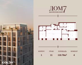 Продается 4-к квартира общей площадью 110.70 кв.м на 11 этаже в жилом квартале премиум-класса "Дом 7 Даниловский".