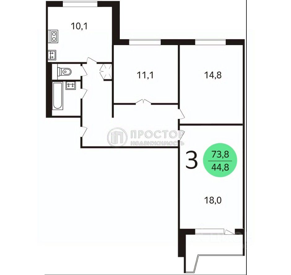 - Пространство жилых комнат организовано таким образом, чтобы оптимально использовать всю площадь для размещения зон: