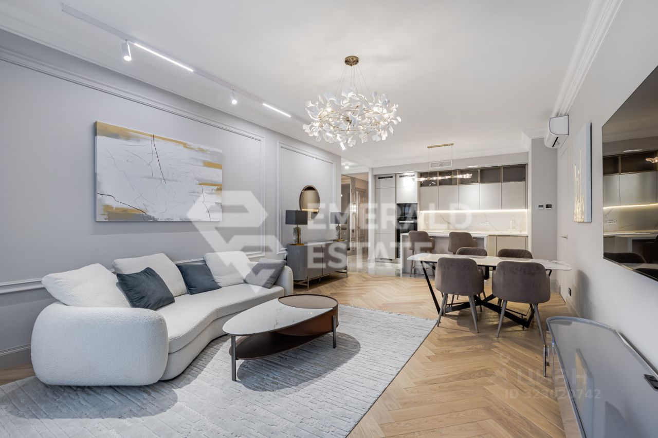 Новый ремонт выполнен в современном стиле, из дорогостоящих натуральных материалов.
