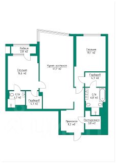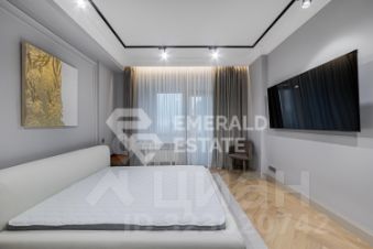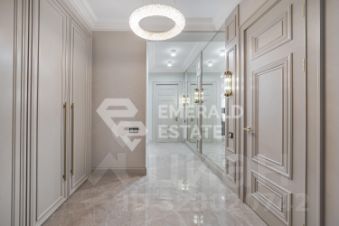 Планировочное решение: прихожая с гардеробом, кухня-гостиная, 2 мастер-спальни с собственной ванной и гардеробными комнатами, лоджия, постирочная.