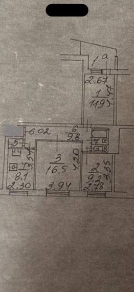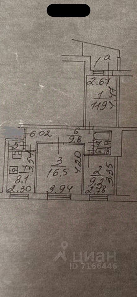 3 изолированные комнаты площадью 11.9, 9,2, 16,5 кв.м;