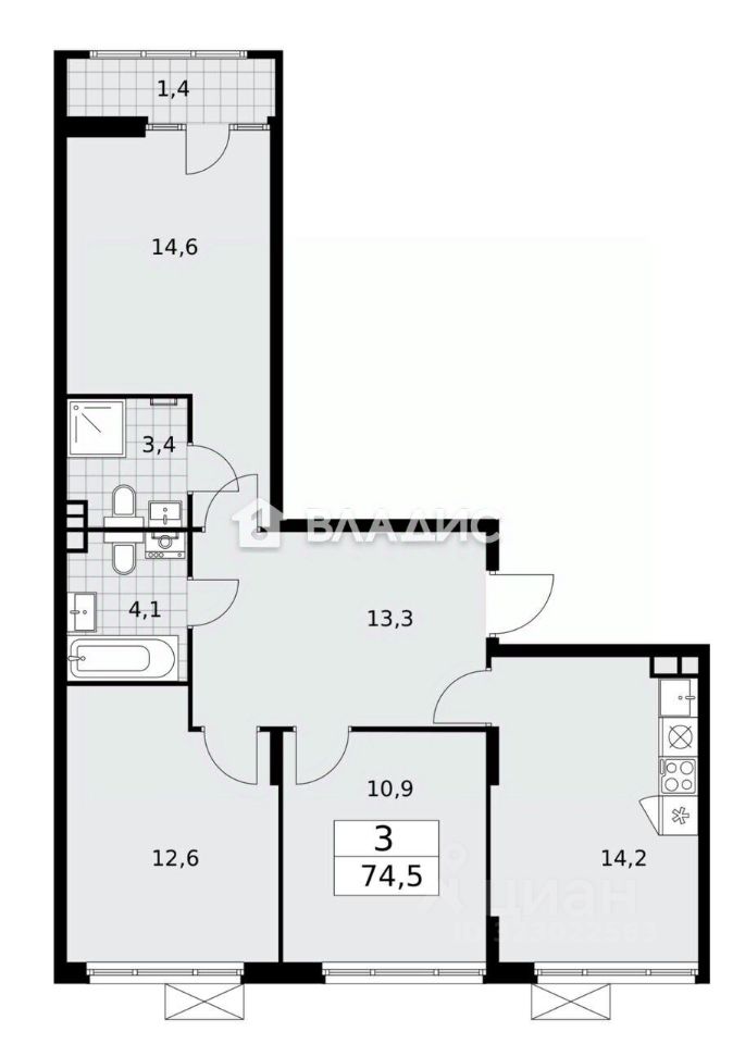 Продается 3-комнатная квартира в ЖК "Деснаречье". Корпус 4.2.