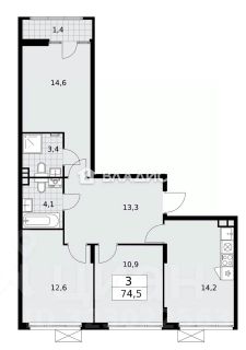 Квартира 3К, 74,5 кв м на 5 этаже около МЕТРО с мастер-спальней + ГАРАЖ 13 кв м