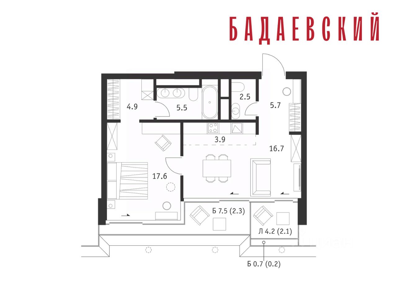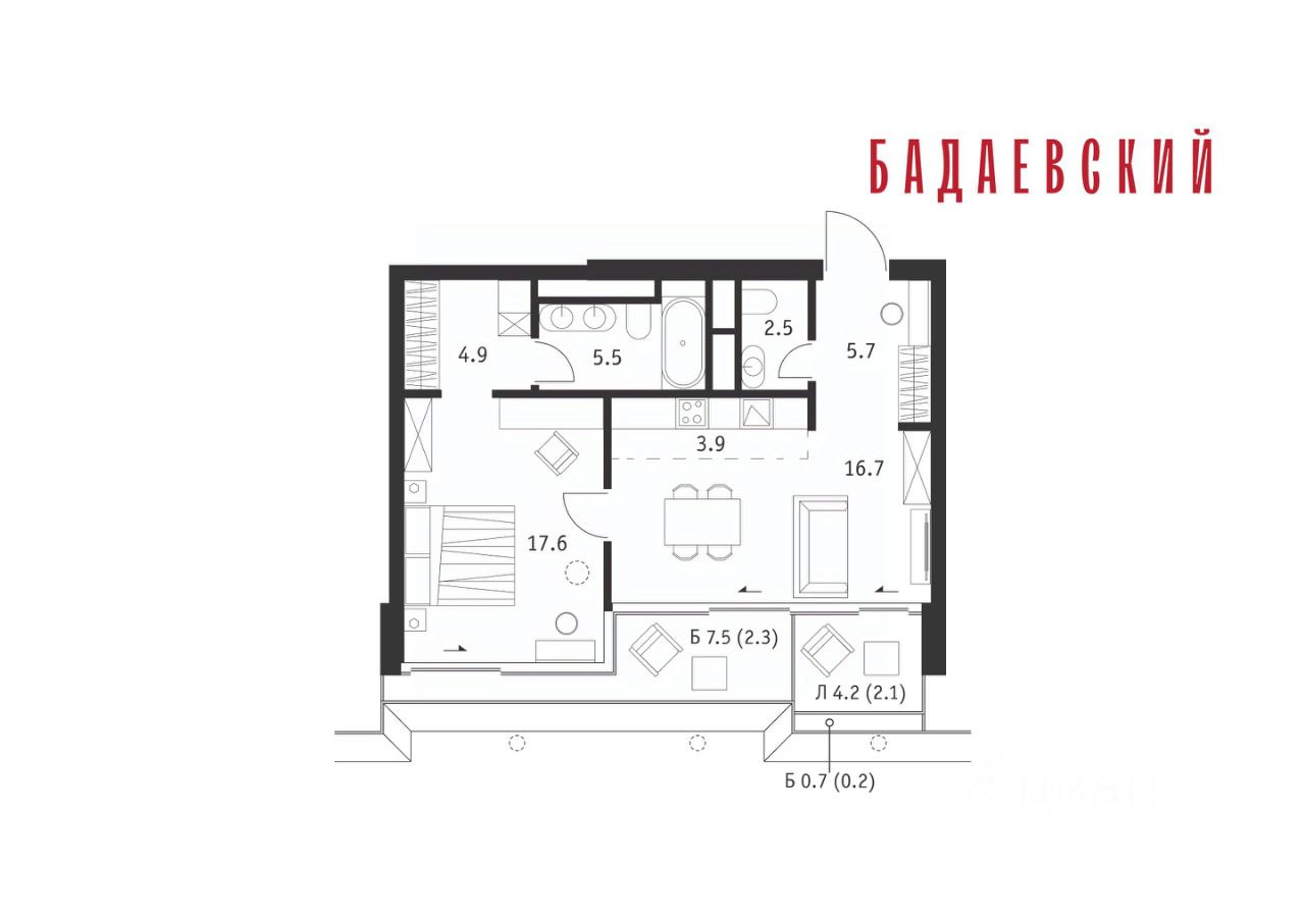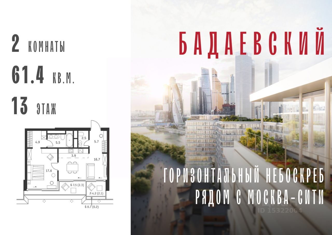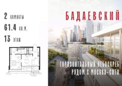 Продаётся 2-комнатная квартира общей площадью 61.40 м² на 13 этаже Жилого Комплекса Бадаевский.