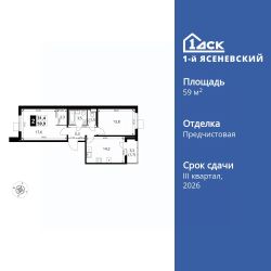 Продаётся 2-к квартира номер 561 общей площадью 59.9 кв.м. на 15-м этаже 18 этажного здания. Отделка Whitebox. Цена с учётом скидки.