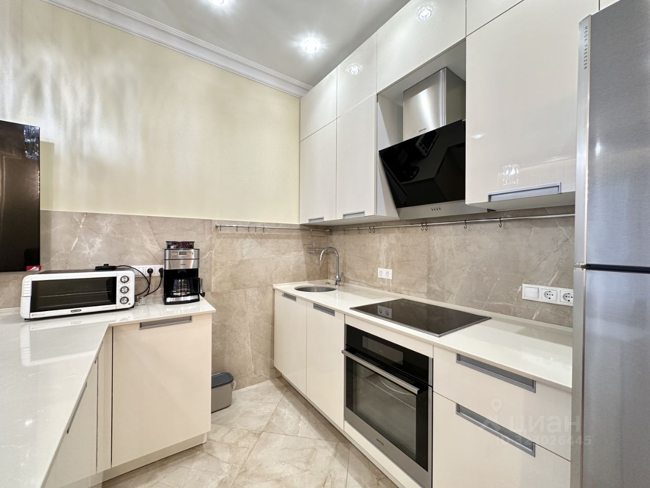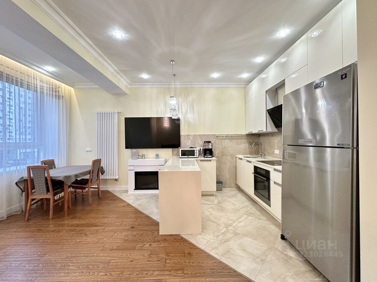В квартире ремонт сделан из лучших материалов, импортных и российских. Столешница из кварцевого агломерата, качественная встроенная мебель, изготовленная на заказ, премиальная сантехника.