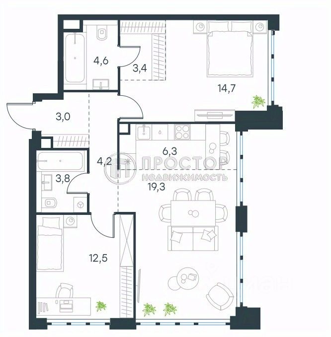 Лучшая планировка 3 евро-квартиры в ЖК "Левел Южнопортовая"