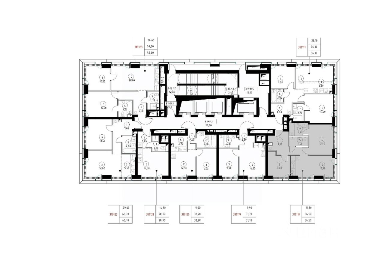 Продаётся 2-комнатная квартира общей площадью 54.50 м² с предчистовой отделкой в ЖК VEER на 19-м этаже 46 этажного дома.