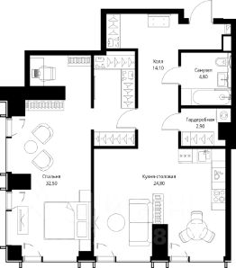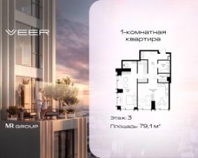 Продаётся 1-комнатная квартира общей площадью 79.10 м² с предчистовой отделкой в ЖК VEER на 3-м этаже 59 этажного дома.