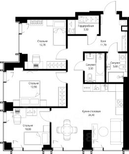 Продаётся 3-комнатная квартира общей площадью 82.10 м² с предчистовой отделкой в ЖК VEER на 21-м этаже 59 этажного дома.
