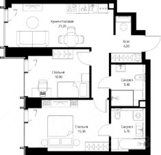 Продаётся 2-комнатная квартира общей площадью 62.90 м² с предчистовой отделкой в ЖК VEER на 11-м этаже 59 этажного дома.