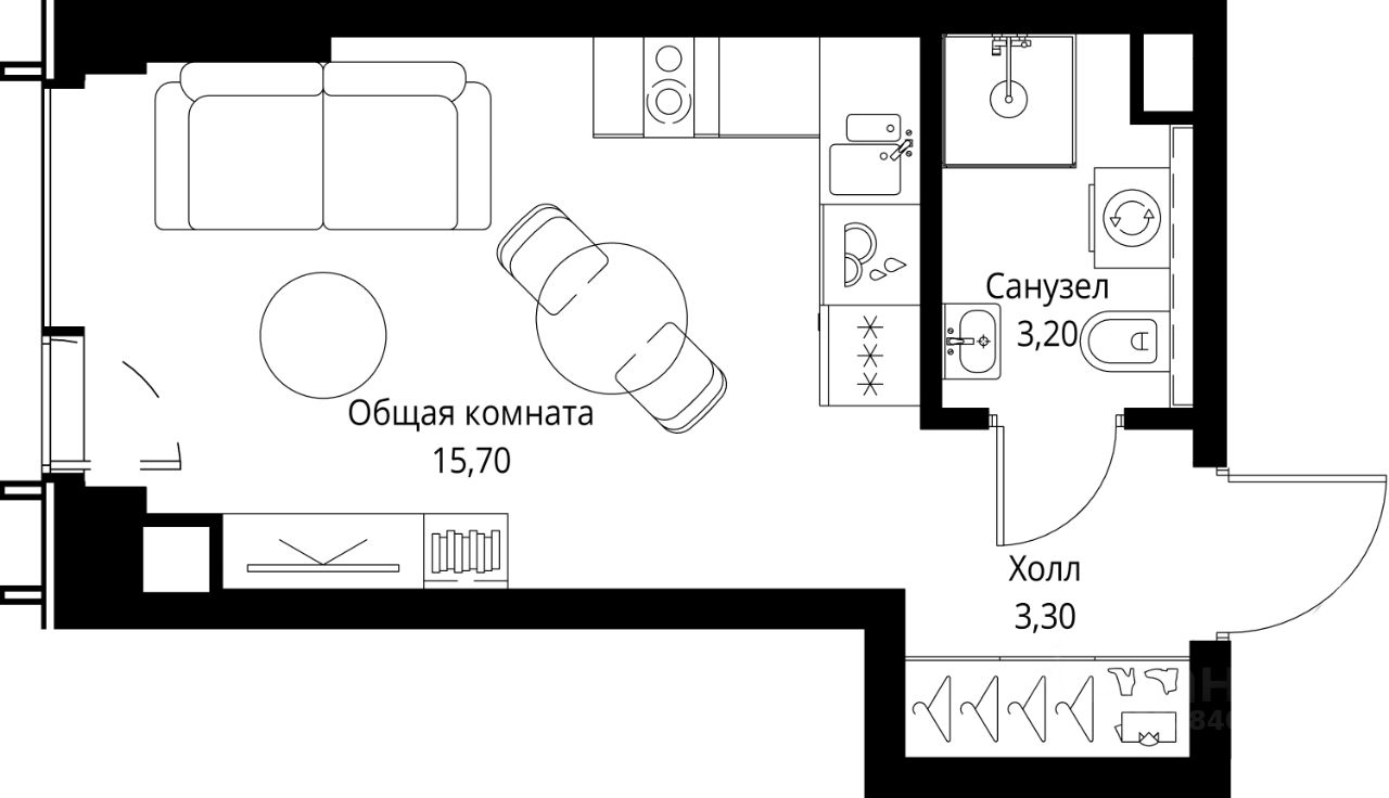 Продаётся студия общей площадью 22.20 м² без отделки в ЖК VEER на 24-м этаже 59 этажного дома.