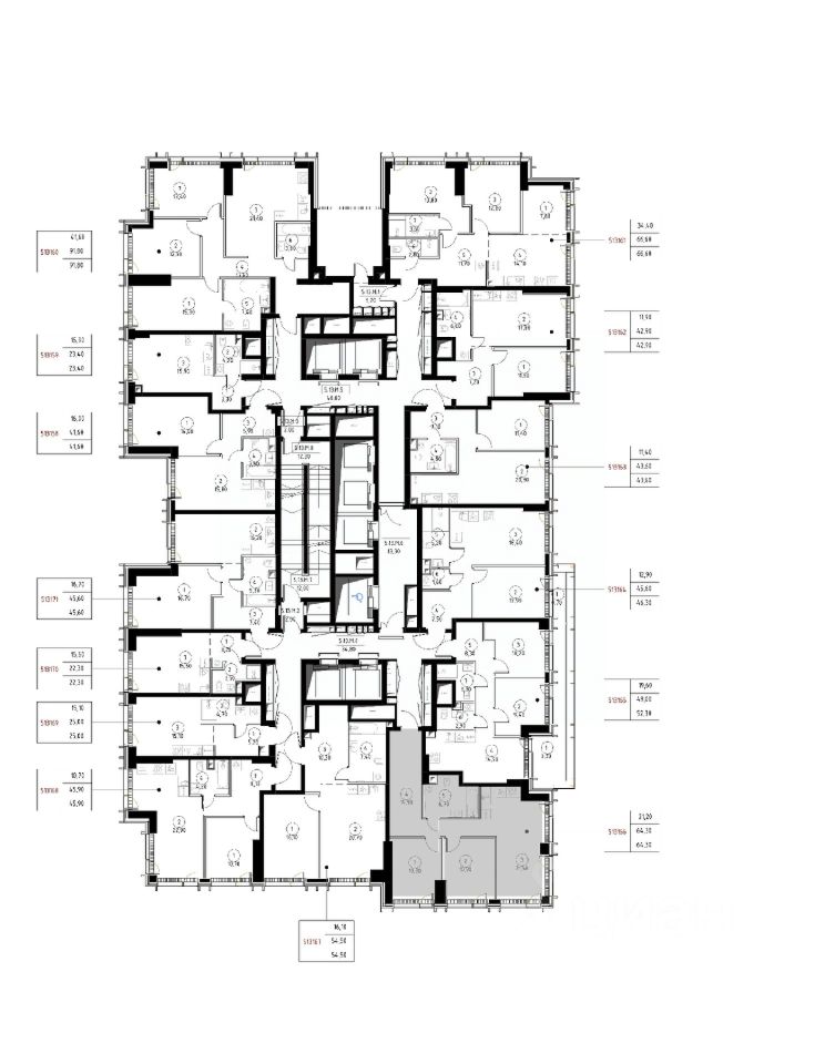 Продаётся 2-комнатная квартира общей площадью 64.30 м² без отделки в ЖК VEER на 13-м этаже 59 этажного дома.