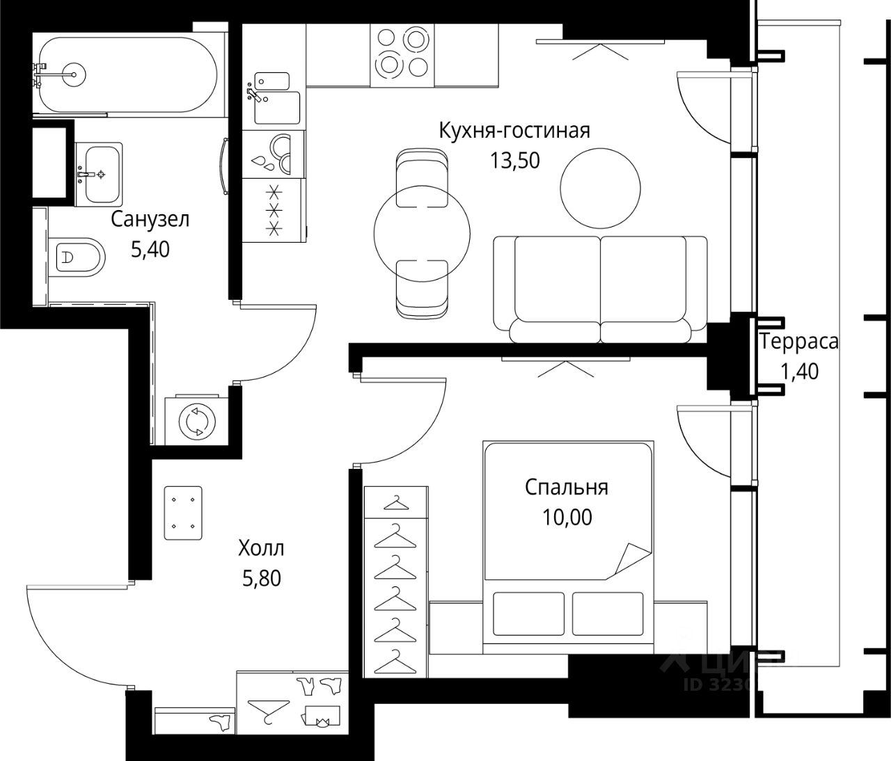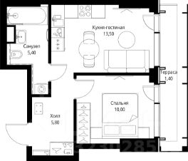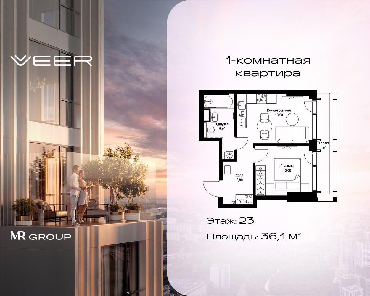 Продаётся 1-комнатная квартира общей площадью 36.10 м² без отделки в ЖК VEER на 23-м этаже 59 этажного дома.