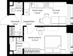Продаётся 1-комнатная квартира общей площадью 36.15 м² без отделки в ЖК VEER на 48-м этаже 70 этажного дома.