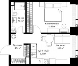 Продаётся 1-комнатная квартира общей площадью 39.47 м² без отделки в ЖК VEER на 38-м этаже 70 этажного дома.