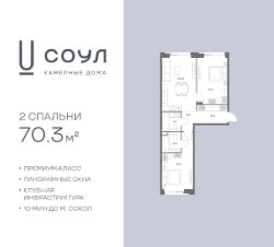 Продается 2-к. квартира номер 193 общей площадью 70.3 кв.м. на 5-м этаже 7 этажного дома, камерные дома СОУЛ (премиум-класс). Без отделки.