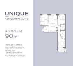 Продается 3-к. квартира номер 182 общей площадью 90 кв.м. на 3-м этаже 7 этажного дома, корпус UNIQUE (премиум-класс). Без отделки.