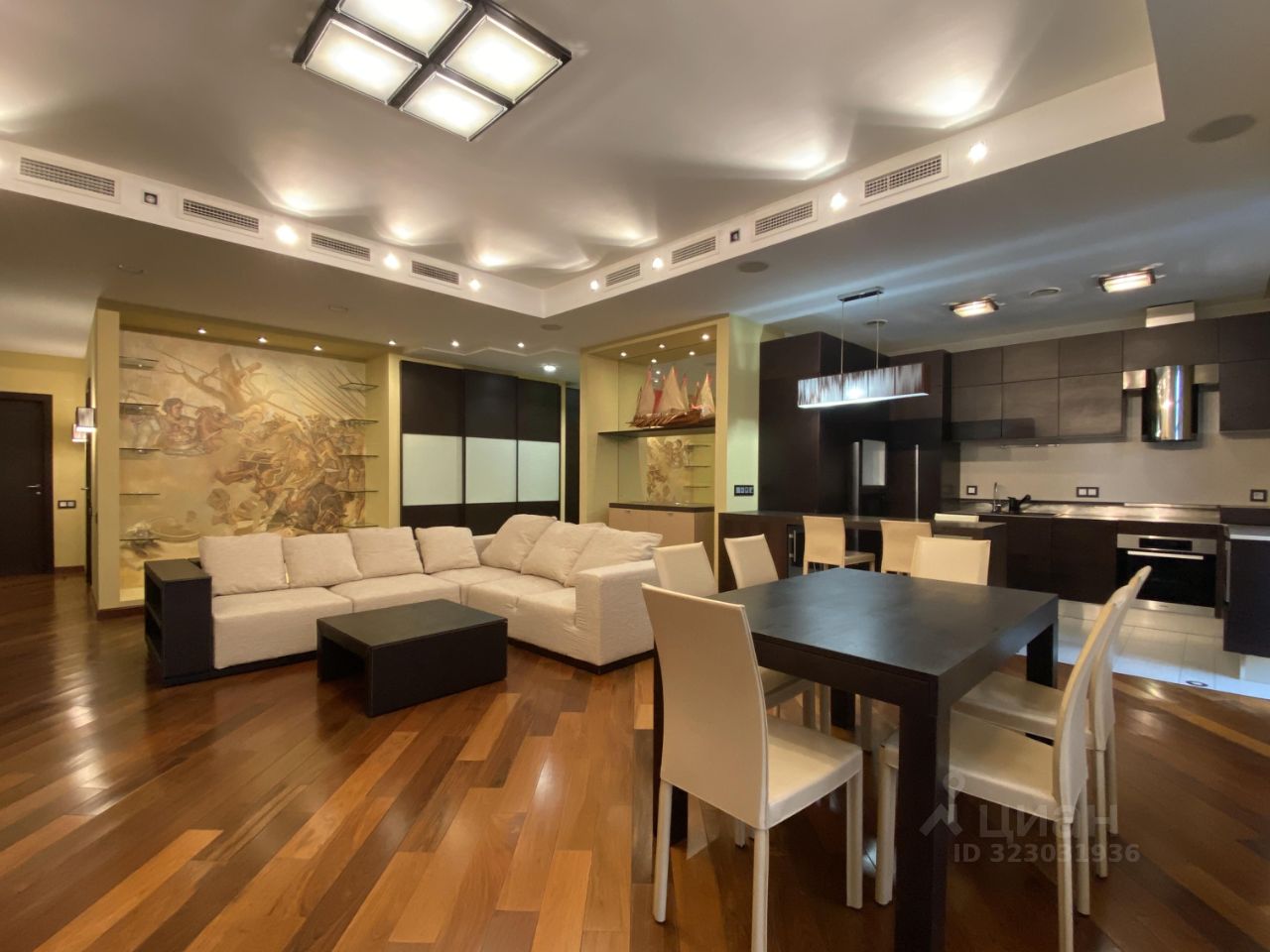 В квартире три изолированные спальни и гостиная, совмещенная с кухней. Отдельная гардеробная комната. Два санузла со стиральной и сушильной машинами Miele. Большая лоджия с панорамным остеклением.