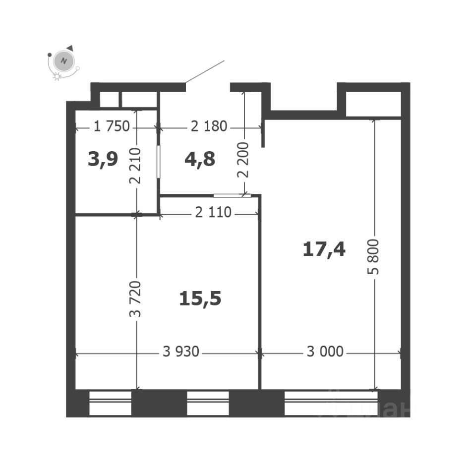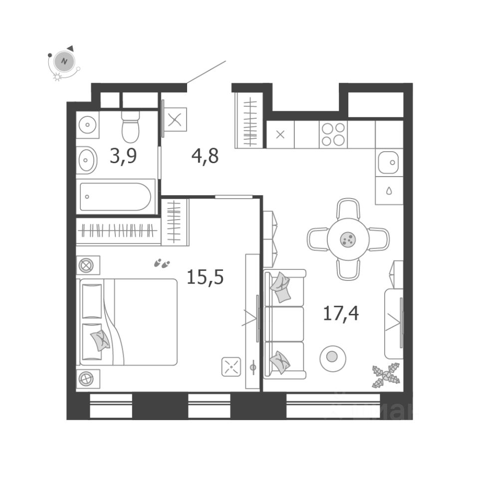 Общая площадь квартиры — 41.6 кв. м, этаж 3 из 4.