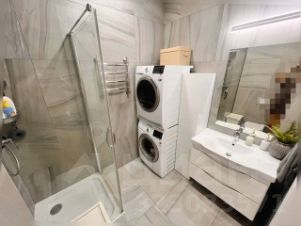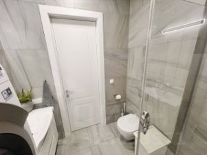 Квартира полностью укомплектована хорошей дорогой мебелью. Очень солнечная, теплая. Вид на улицу, в поле видимости нет ни одной стройки. В квартире 2 изолированные комнаты, 1 просторная кухня-гостинная, 2 изолированных санузла, много мест хранения. Вся техника хороших марок, шкафы выполнены на заказ. В мастер спальне панорамное окно с французским балконом.