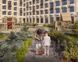 Проект состоит из трёх 17-этажных корпусов с просторными лобби с кондиционерами, а также дворами-парками с Wi-Fi. На первых этажах откроются магазины, кафе, салоны красоты и полезные сервисы для комфортной жизни.
