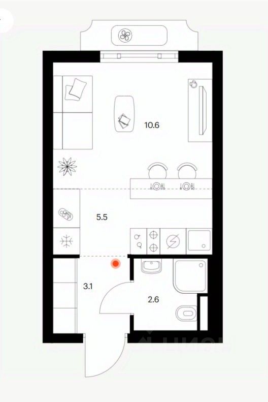 — Удобная планировка: комната правильной формы, прихожая, совмещённый санузел.