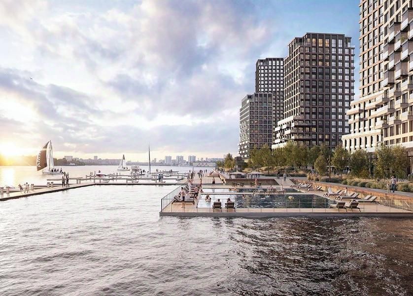• Собственная набережная длиной 412 м., которая после завершения строительства сомкнется с эко-парком Печатники.