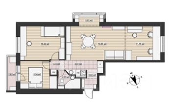 Общая площадь 64,2 м². Жилая площадь 43,7 м²