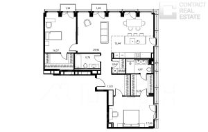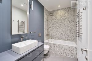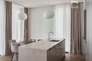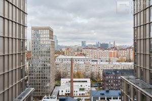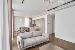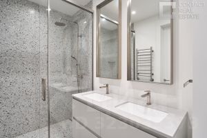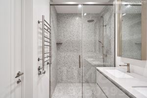 Функциональная планировка: кухня-гостиная, мастер-спальня с гардеробной и ванной комнатой, вторая спальня c гардеробной, гостевой санузел, постирочная, просторный холл с нишей для хранения. Угловая квартира, много окон, благодаря чему всегда наполнена солнечным светом, предлагается с премиальной отделкой от застройщика в стиле Grey. Дизайн интерьера от итальянской студии Molteni Group. Установлена кухня и ванная итальянского бренда Dada. На полу деревянная паркетная доска с системой "тёплый пол". Санузлы облицованы керамогранитом и бетонной плиткой "Терраццо". Из окон открывается панормама на город и во внутреннюю благоустроенную территорию двора.