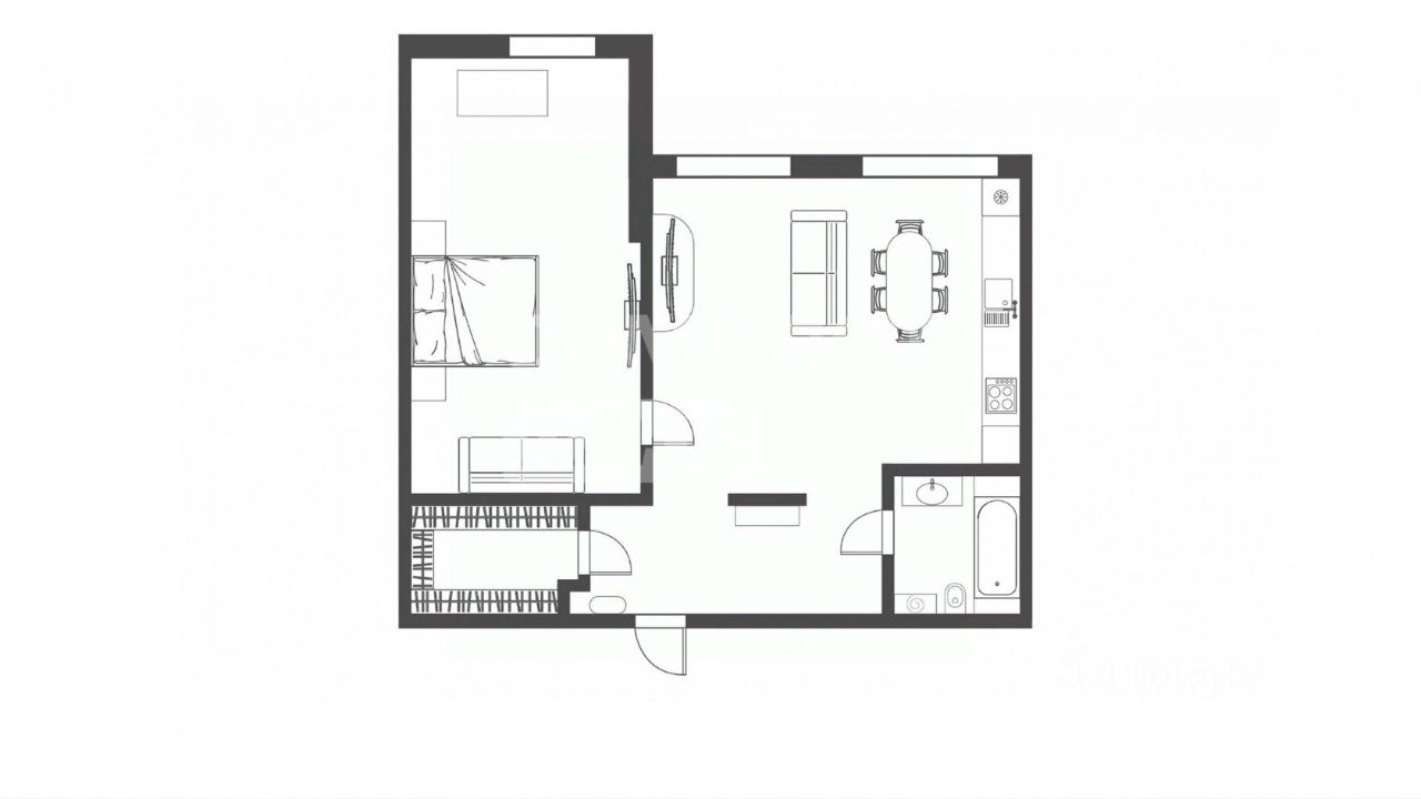- Удобная планировка: спальня, кухня-гостиная, гардеробная, ванная комната.